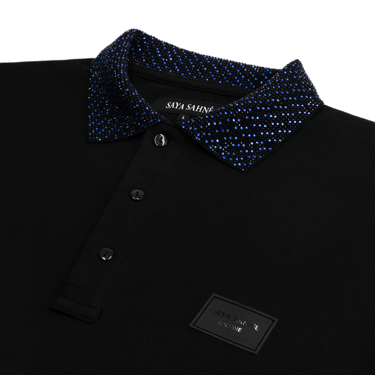POLO SHIRT RHINESTONES BLUE X BLACK